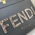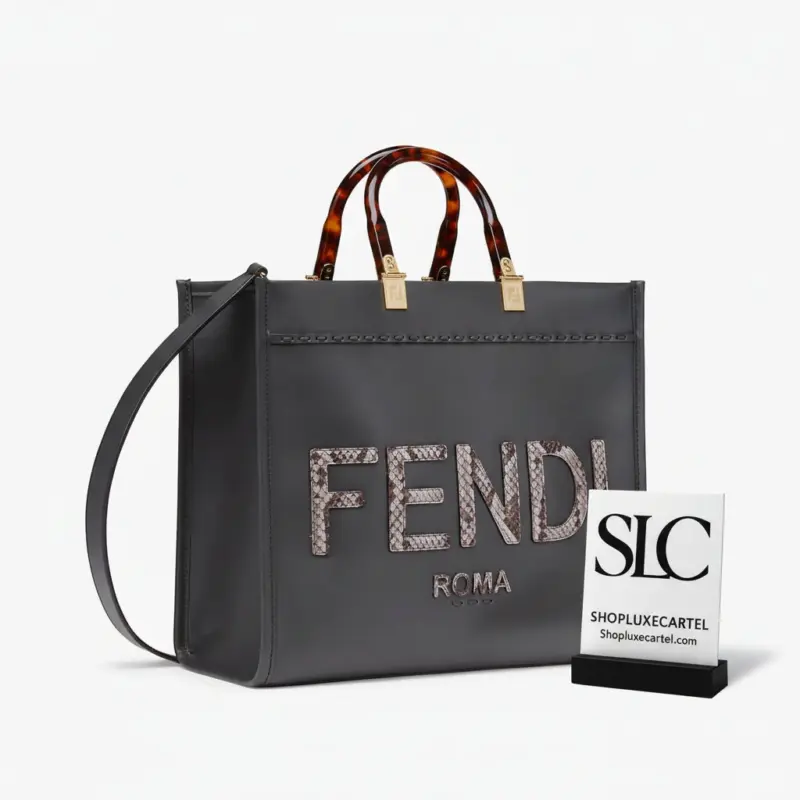 Discover a blend of sophisticated structure and exotic flair with this medium shopper tote. Presented in a versatile dark grey, this bag makes a statement with its striking python-embossed lettering on the front panel. The design is elegantly contrasted by rigid, tortoiseshell-effect top handles, adding a classic touch to its modern silhouette.