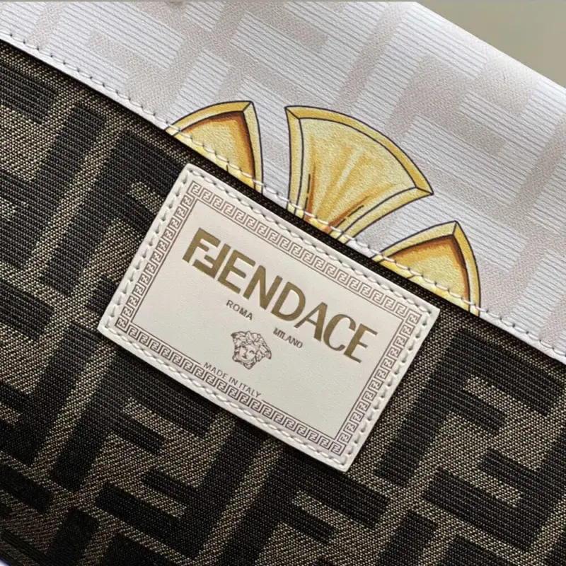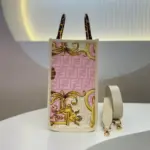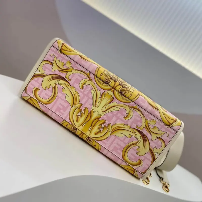 - White leather with a pink and gold baroque and geometric print