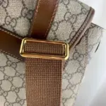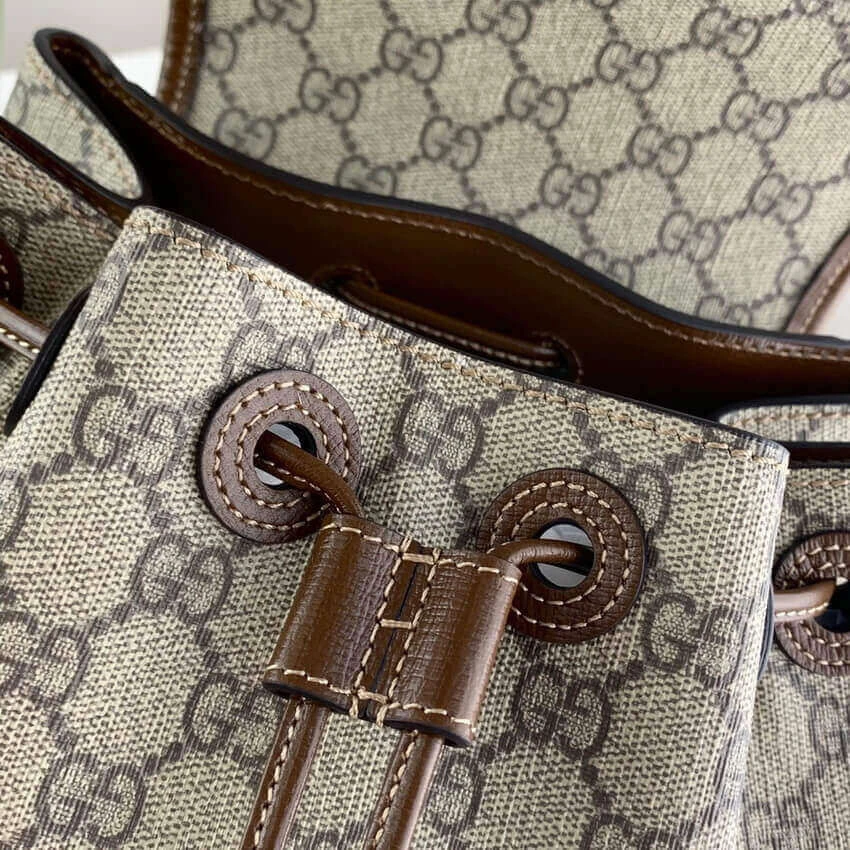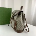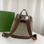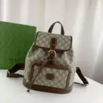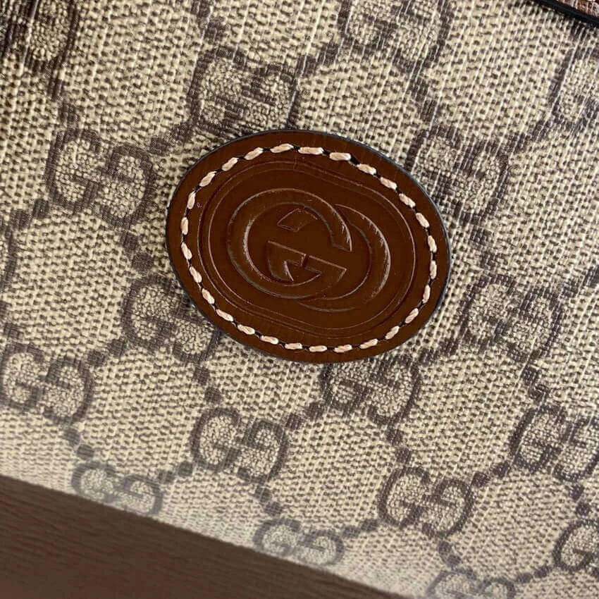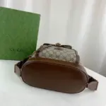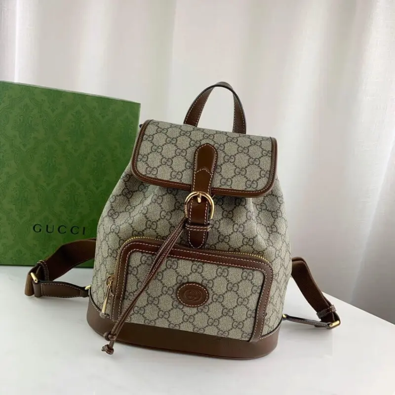 The backpack is thoughtfully organized with a spacious interior and multiple pockets to keep your essentials secure. A distinctive oval leather tag featuring an interlocking G emblem adds a final touch of refined style. With its comfortable handle and practical layout, this accessory offers a perfect fusion of durability and elegance.