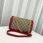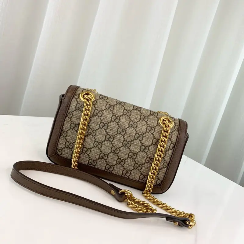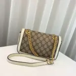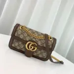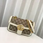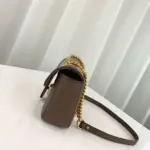 This exquisitely crafted mini shoulder bag combines timeless style with modern versatility. Its structured, quilted silhouette is fashioned from durable coated canvas featuring a sophisticated monogram print, elegantly accented with genuine leather trim. The design is completed with polished, gold-toned hardware and a distinctive interlocking G-shaped emblem on the front flap.