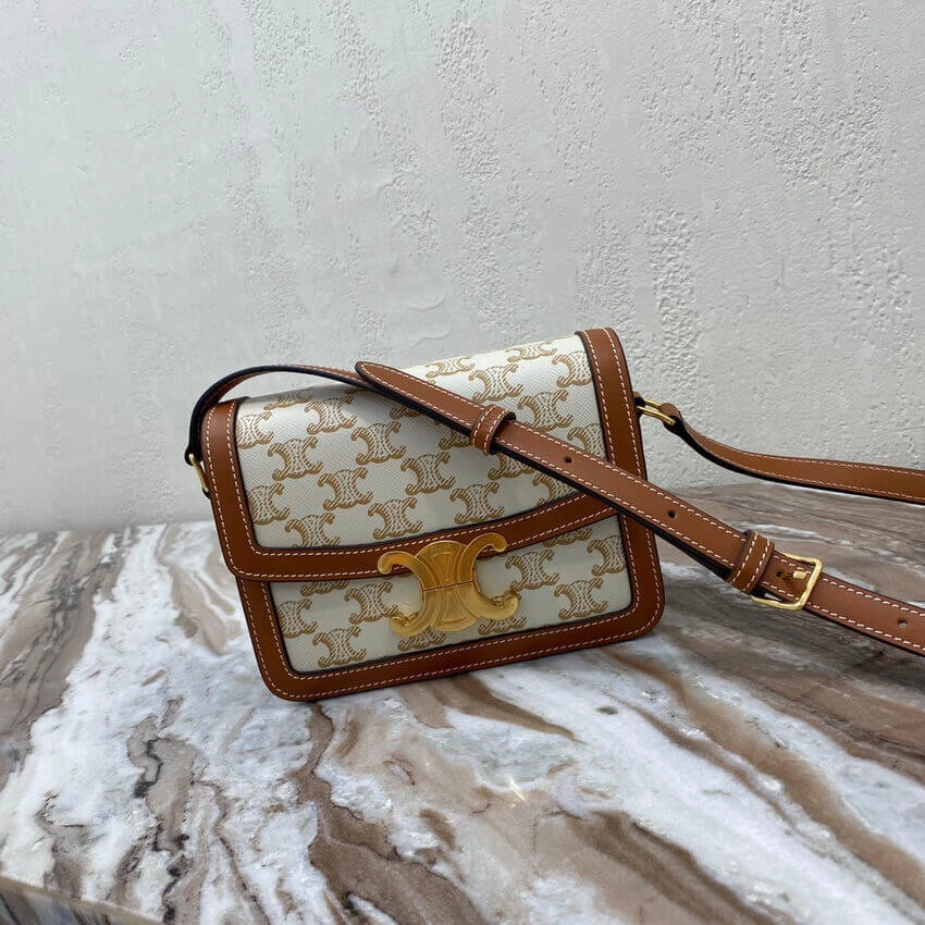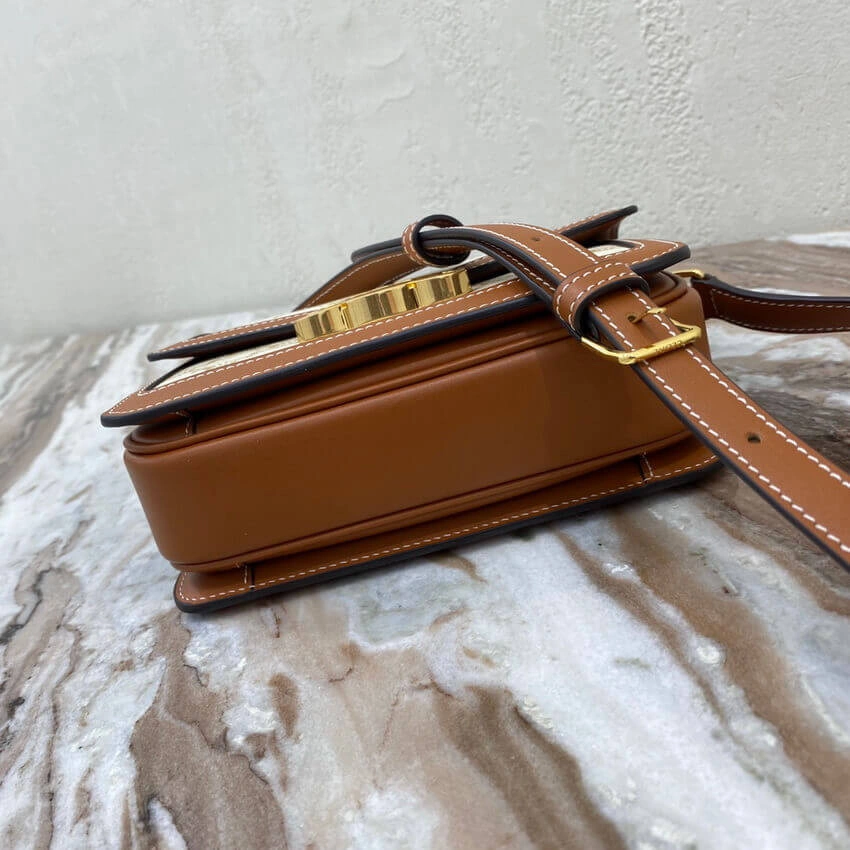 Discover a blend of timeless style and modern functionality with this elegantly structured teen crossbody bag. Crafted from a durable monogram canvas and trimmed with supple calfskin, this piece offers a sophisticated aesthetic suitable for any occasion. Its compact, clean-lined silhouette is perfected with polished, gold-tone hardware and a distinctive emblem closure that adds a touch of refined character.