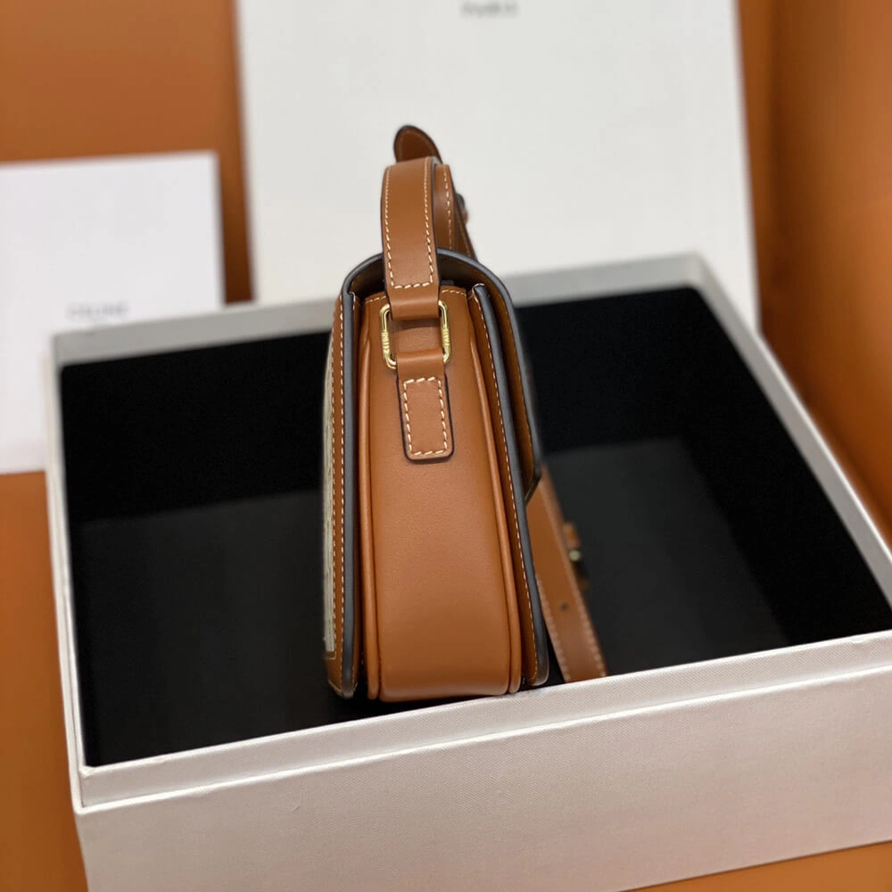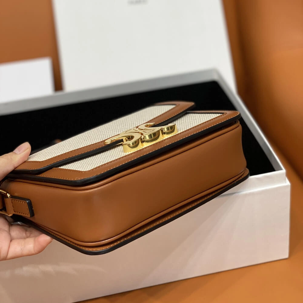 Teen Triomphe Crossbody Bag in Textile and Tan Calfskin 188423