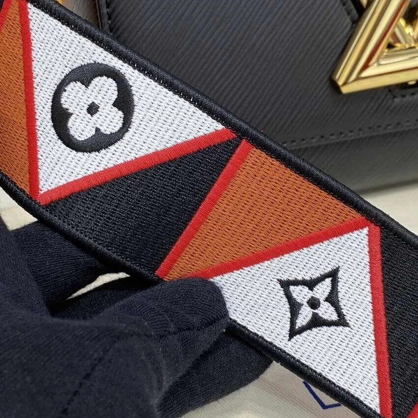 This accessory offers multiple carrying options to suit any occasion. It features a wide, comfortable textile strap that is both removable and adjustable, showcasing an intricate geometric pattern on one side and elegant embroidery on the other. For a different look, a single removable handle allows for chic hand-carrying. The thoughtfully designed interior includes practical pockets to keep your essentials organized and easily accessible.