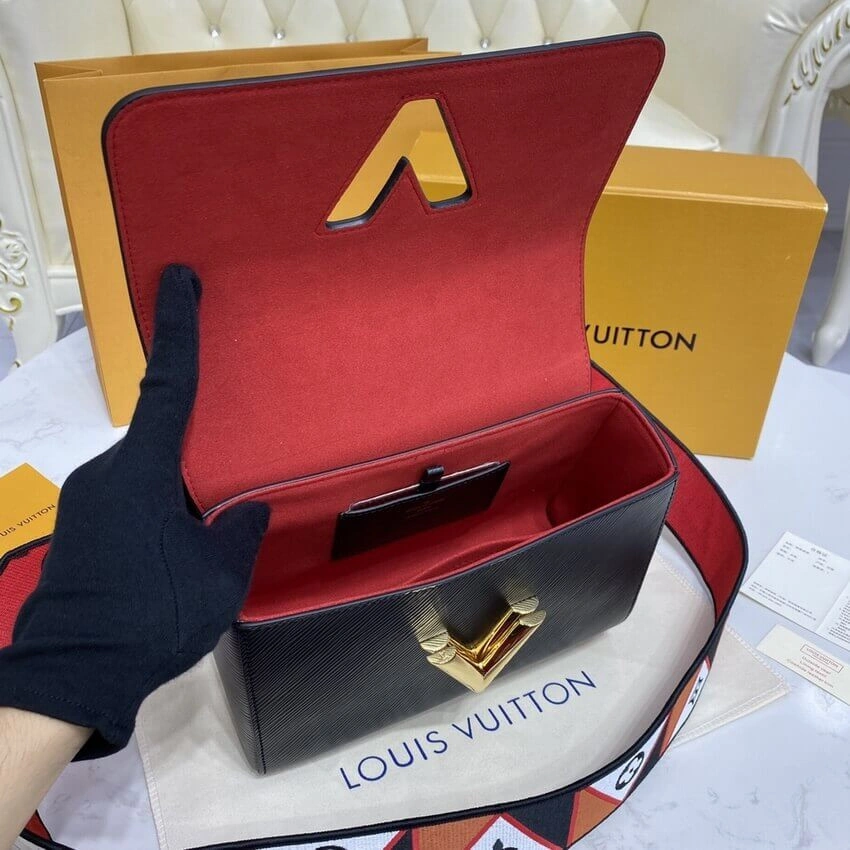 Textured Grained Leather Turn-Lock Shoulder Bag MM in Black M59027