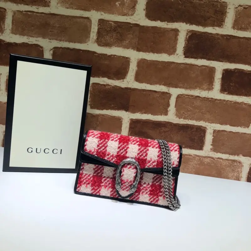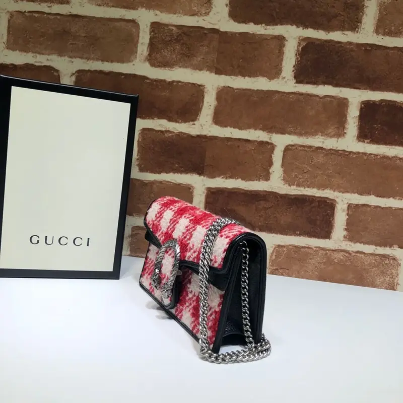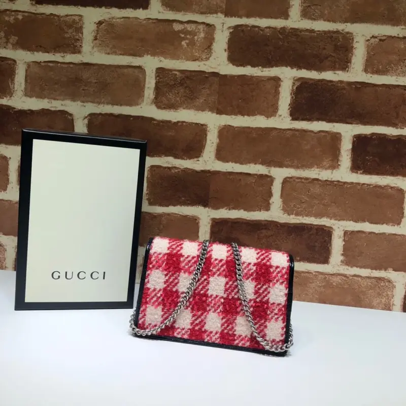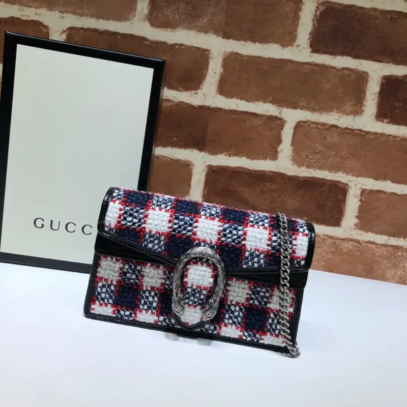 Tiger Head Check Tweed Mini Chain Shoulder Bag 476432