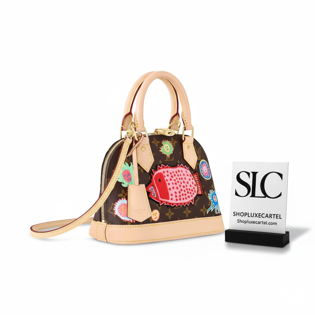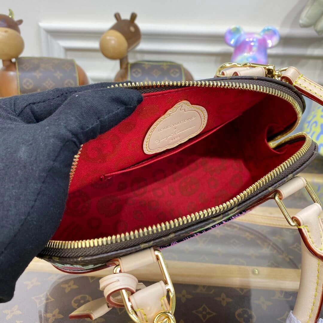 Top Handle Dome Satchel with Faces Print and Embroidery M46428