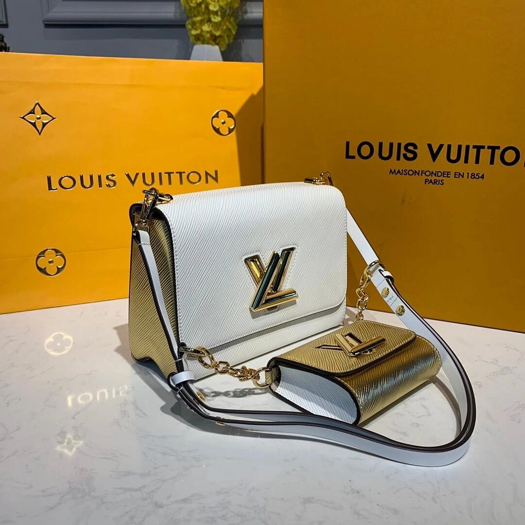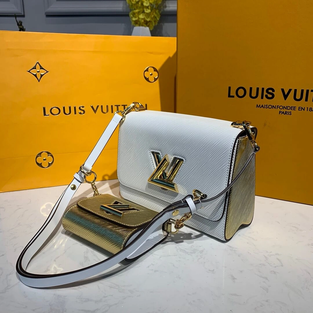 Twist Lock MM Convertible Shoulder Bag White and Gold M55683