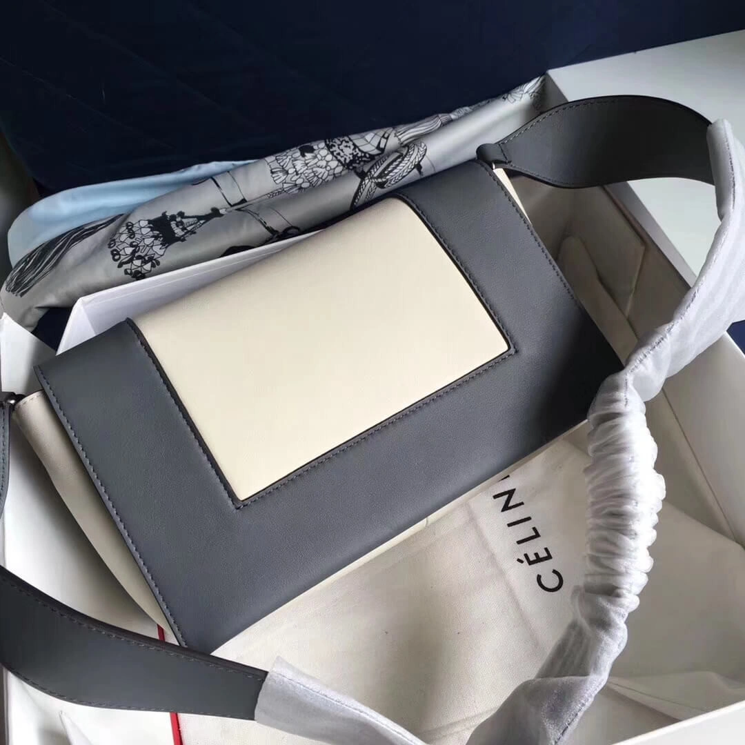 Two-Tone Frame Medium Leather Shoulder Bag Grey White 180263