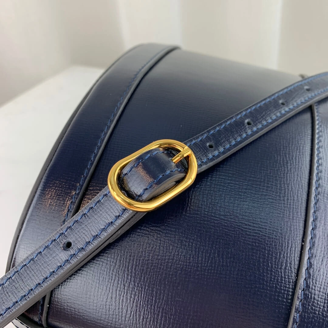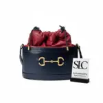 Central to the design is the iconic double ring and bar hardware, an ode to classic equestrian style. This polished, gold-toned detail provides a luxurious focal point. An adjustable shoulder strap ensures comfortable wear, while the secure drawstring closure keeps belongings safe. The spacious, suede-like interior is perfect for organizing daily essentials, making this bucket bag a versatile and stylish choice for any occasion.