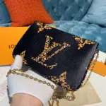 This versatile pouch showcases a striking combination of classic and oversized geometric patterns on a durable coated canvas, accented with a bold animal-inspired print. Its cleverly designed silhouette offers both standout style and practical organization, making it an ideal accessory for elevating any look.