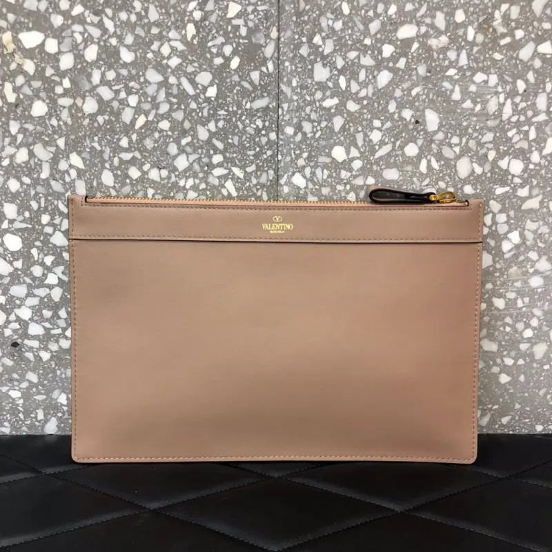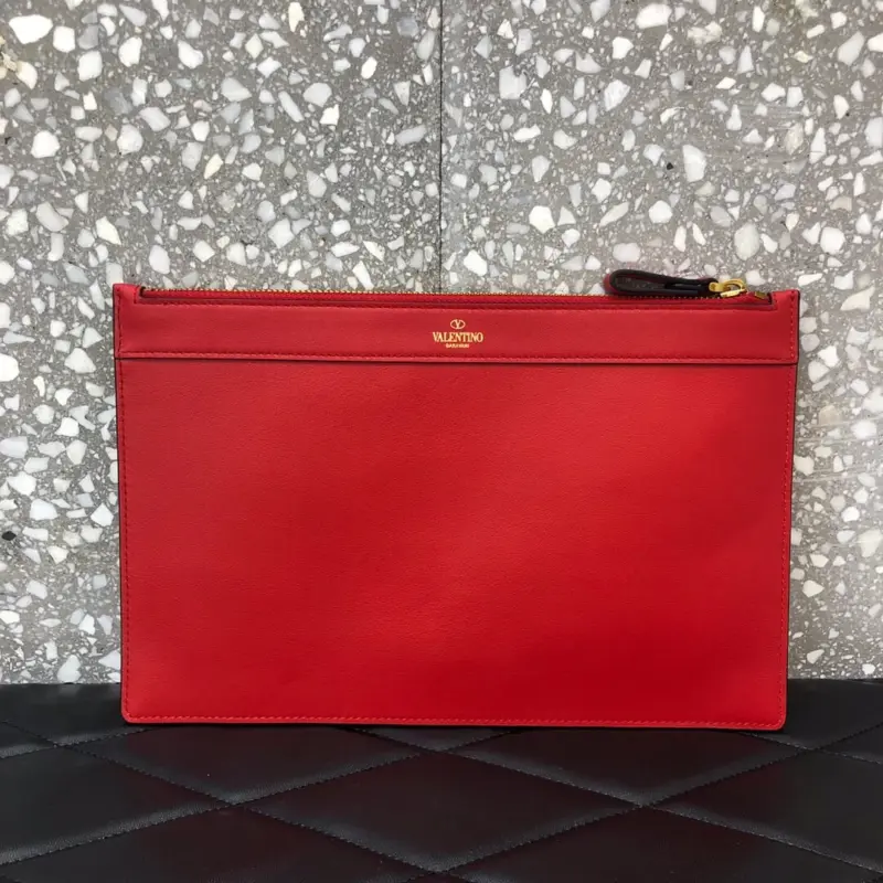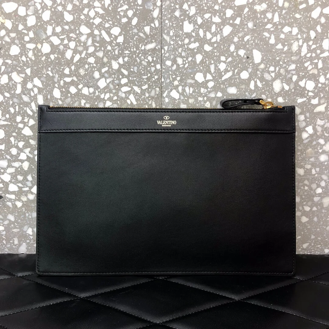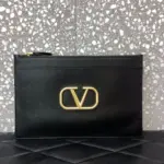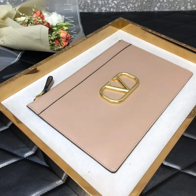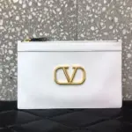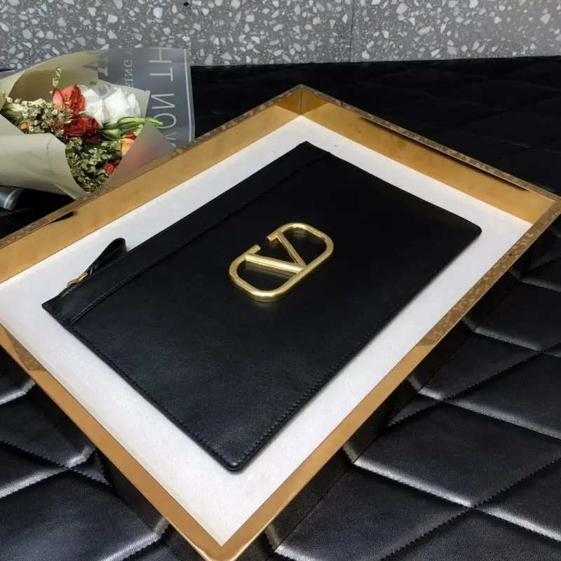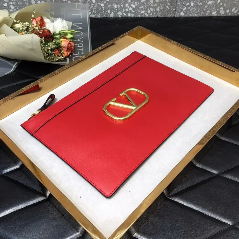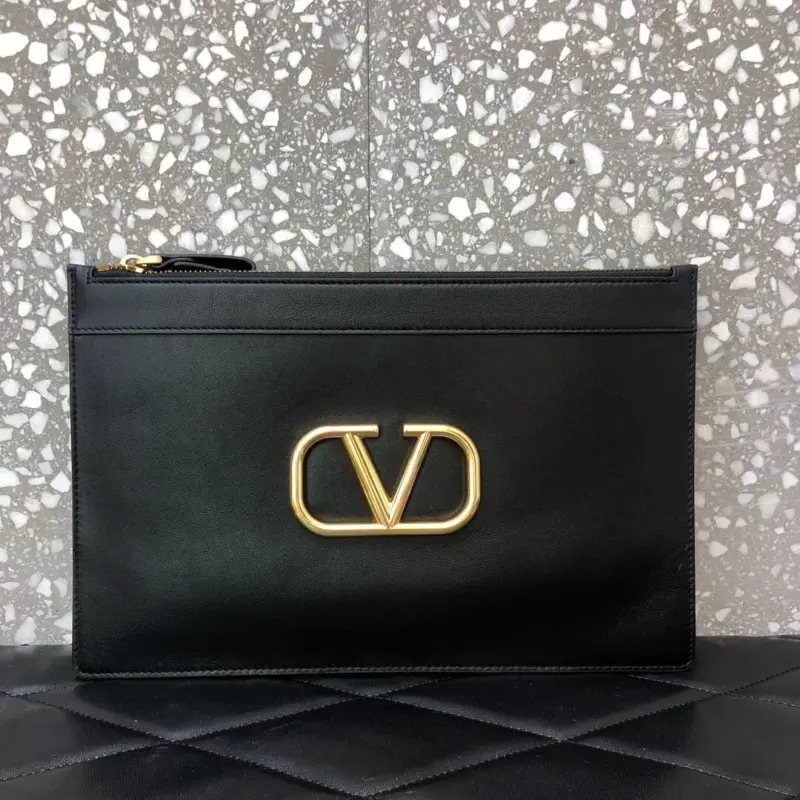 V-Ring Signature Leather Clutch Evening Pouch A0269