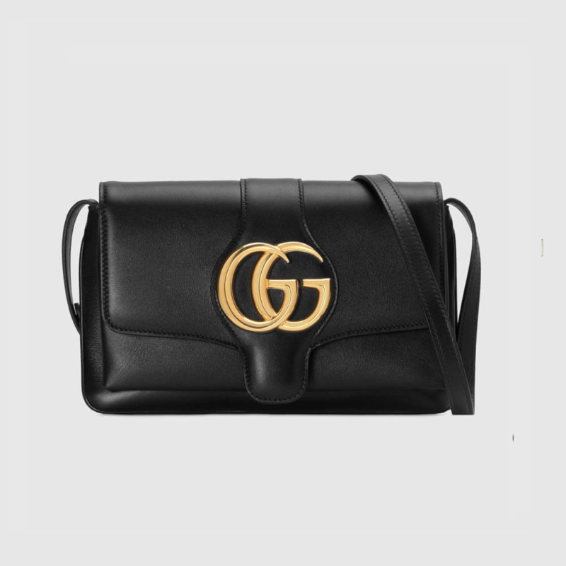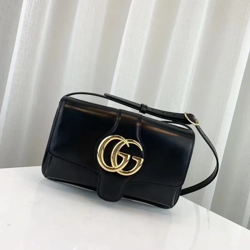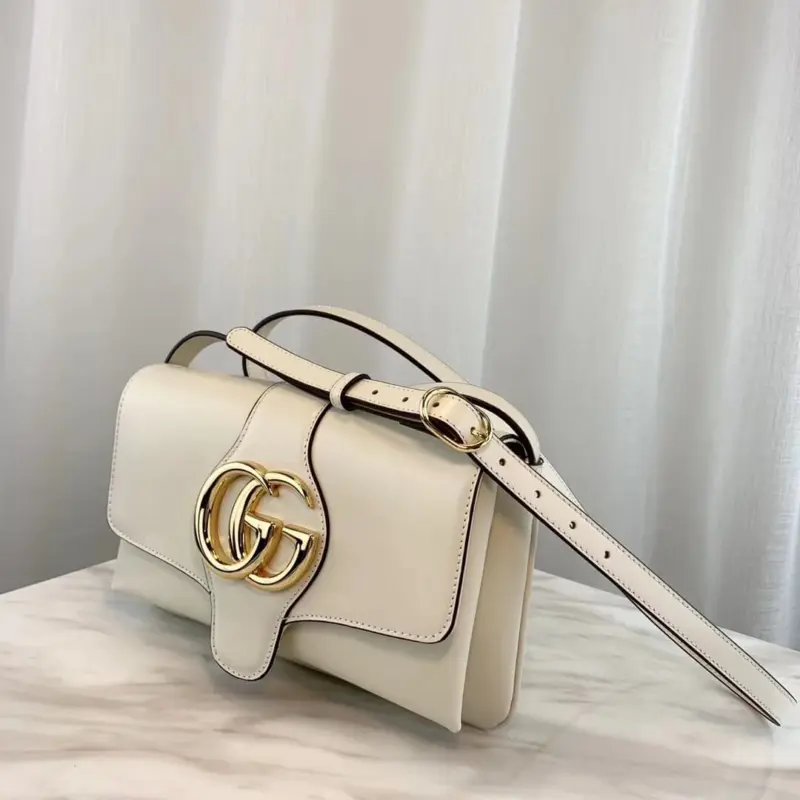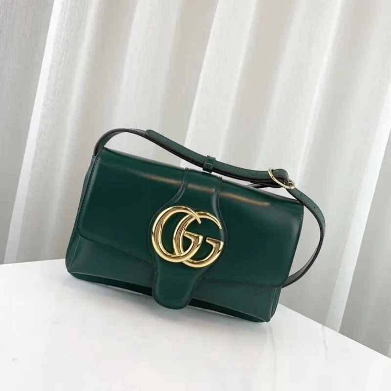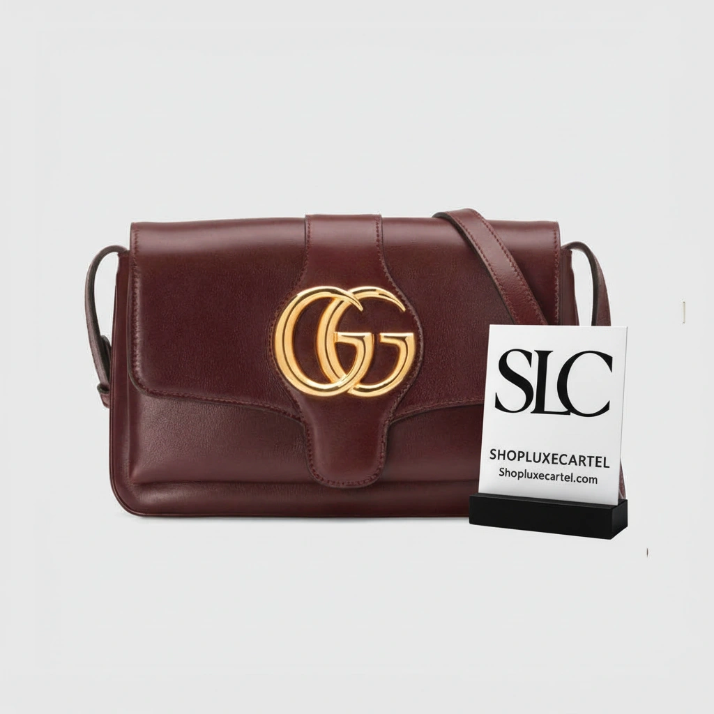 - Prominent oversized metal emblem on the flap