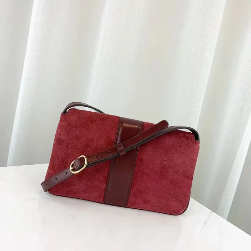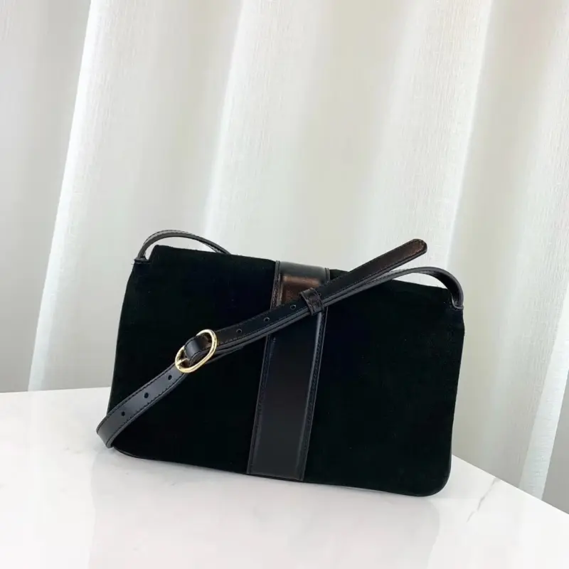 Crafted from supple suede leather, the bag has a rich and soft texture. Its interior is lined with viscose and thoughtfully organized with two gussets and a secure zip pocket, making it as practical as it is stylish. The adjustable shoulder strap allows for comfortable, customized wear, making it a versatile accessory for any occasion.