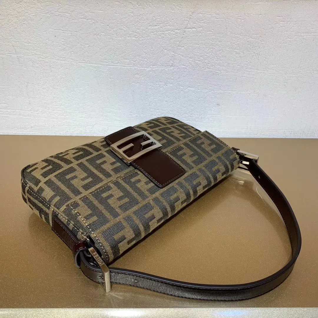Embrace a timeless aesthetic with this vintage-inspired baguette shoulder bag. This piece is expertly crafted from a durable, monogram-printed canvas in a classic black and brown palette, beautifully accented with genuine leather trim. Its iconic, streamlined silhouette offers a touch of sophistication that effortlessly complements any outfit, making it a perfect accessory for various occasions.
