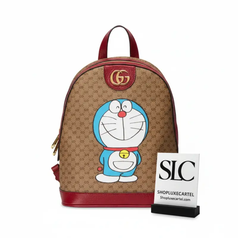 This compact backpack is perfectly structured for daily use or light travel, accented with vibrant cherry red leather trim for a striking contrast. Finished with gleaming gold-toned hardware and a secure zip closure, it’s a versatile accessory that combines high-fashion sensibility with a fun, animated aesthetic. The interior is lined with a quality cotton linen blend to protect your essentials.