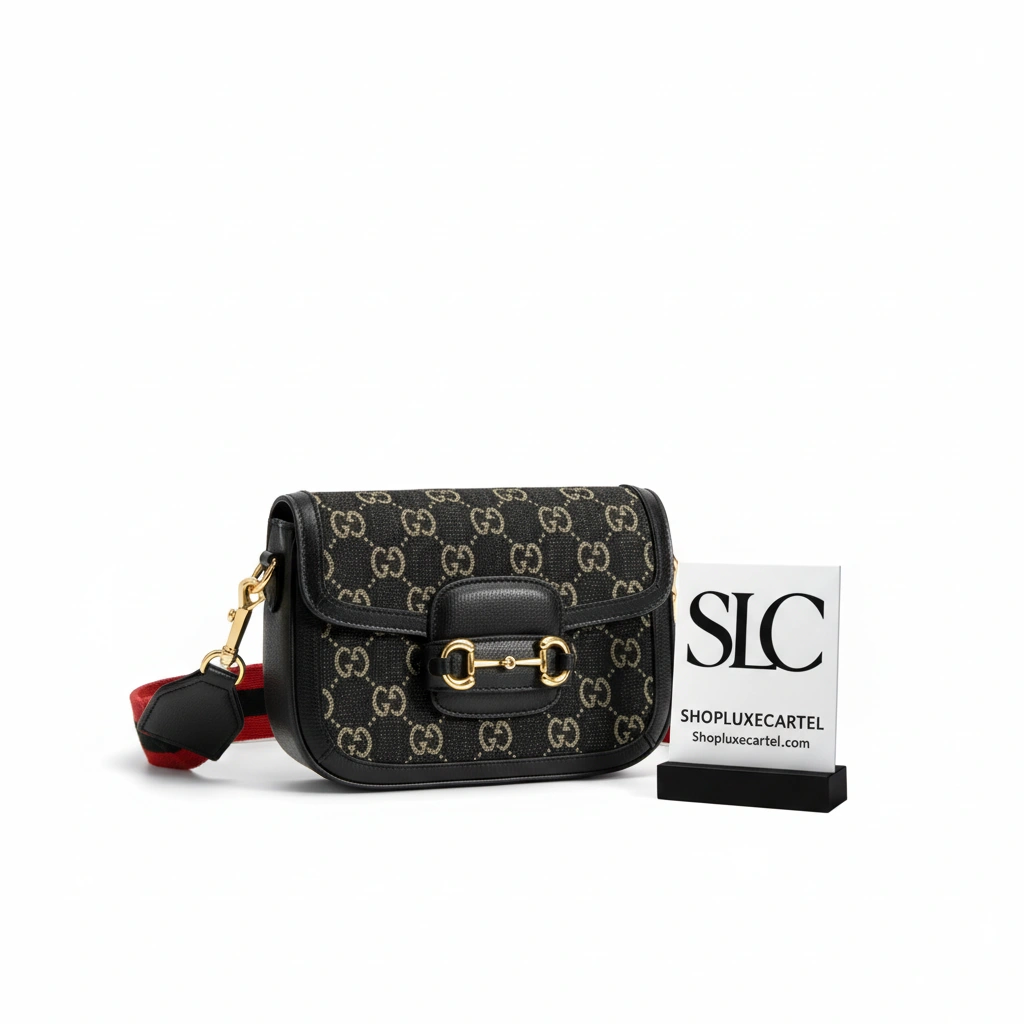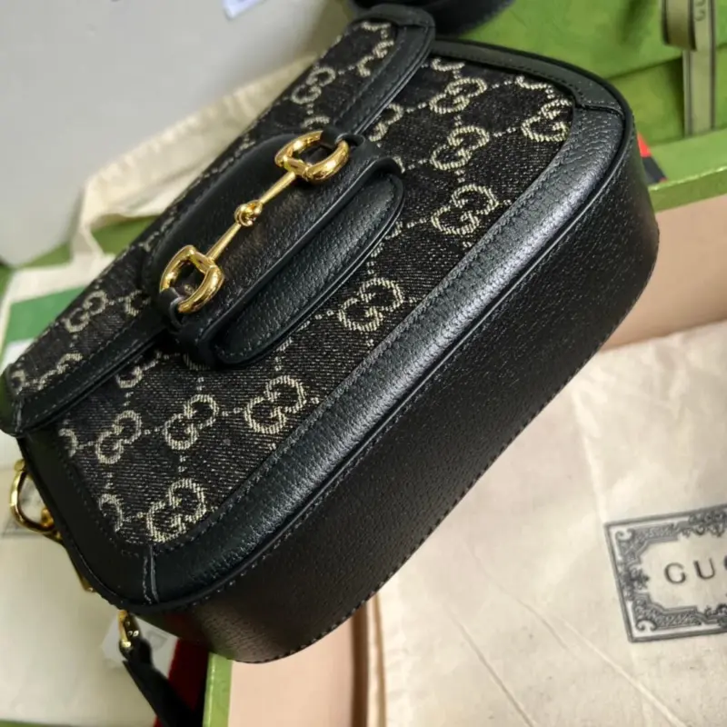 Vintage Style Horsebit 1955 Black Denim Mini Bag 658574