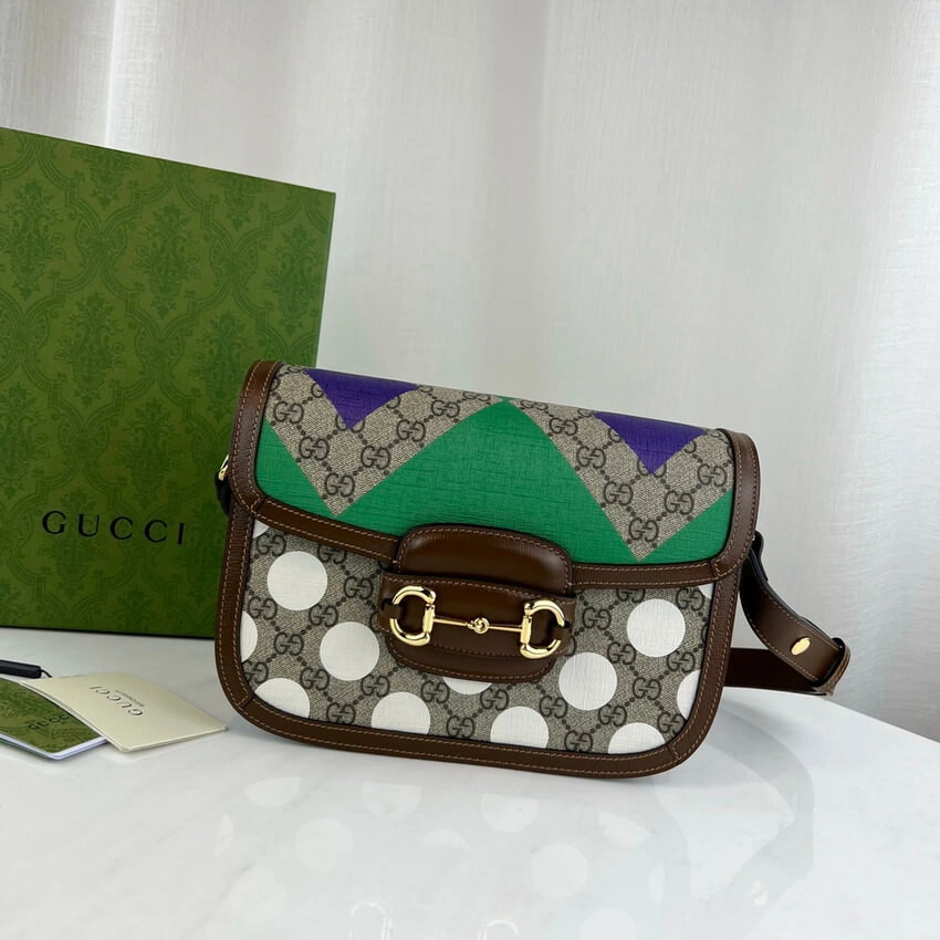 Vintage Style Horsebit 1955 Geometric Print Shoulder Bag 602204