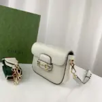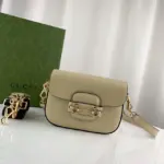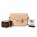 This petite top-handle bag offers a contemporary interpretation of a beloved vintage-inspired silhouette. Its versatile design is enhanced by the inclusion of two different, detachable shoulder straps. Effortlessly switch from understated elegance with a tonal leather strap to a bold, classic look with the distinctive green and red striped webbing option, adapting the bag to any occasion.