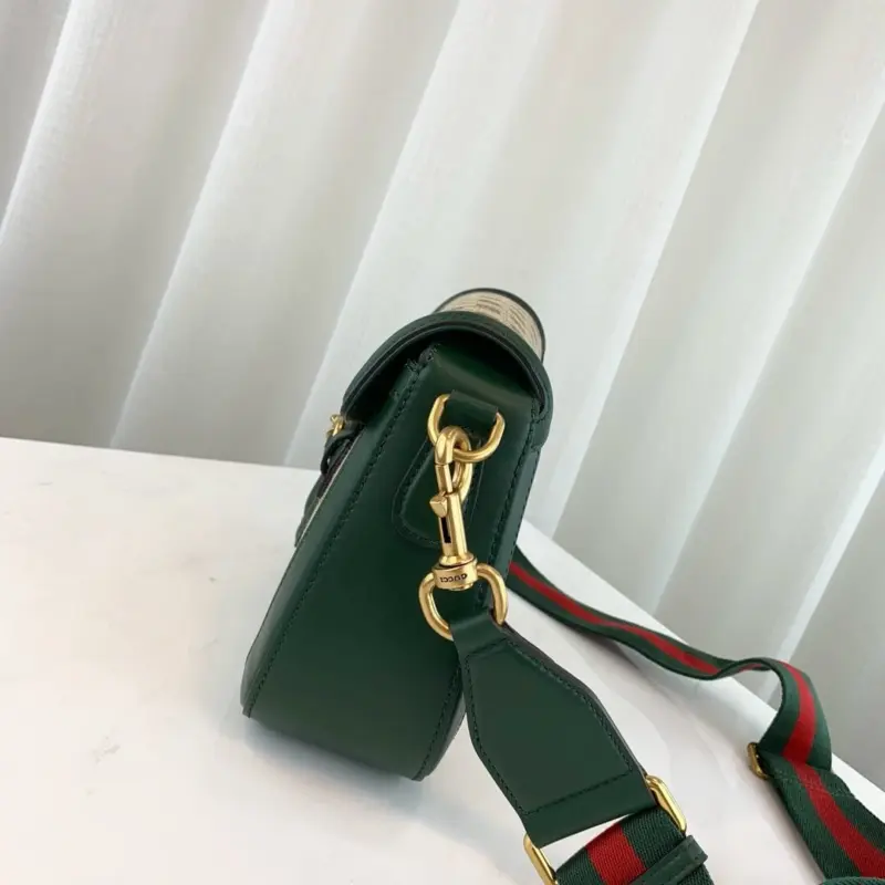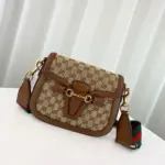 This compact bag is designed for both style and function. The flap closure is secured with a distinctive, equestrian-inspired metal hardware piece in a polished antique gold-tone finish, adding a touch of classic charm. Inside, a natural linen lining and a convenient snap pocket help keep your essentials organized. The durable nylon shoulder strap ensures comfortable carrying, making this piece a perfect companion for any occasion.