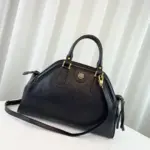 This top handle satchel features a soft, framed construction, crafted from supple natural grain leather. The material has a unique washed and brushed finish, lending a slightly worn yet refined feel to the bag’s vintage-inspired shape. This piece is defined by its distinctive, dual-sided embellishments for a unique look from every angle.