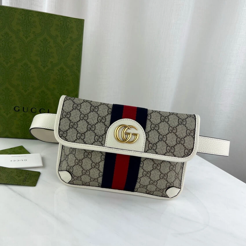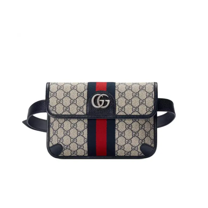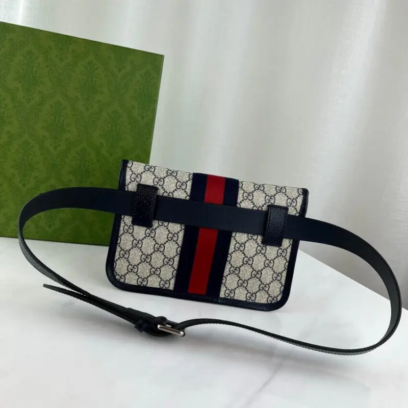 Vintage Style Monogram Print Web Stripe Belt Bag 674081