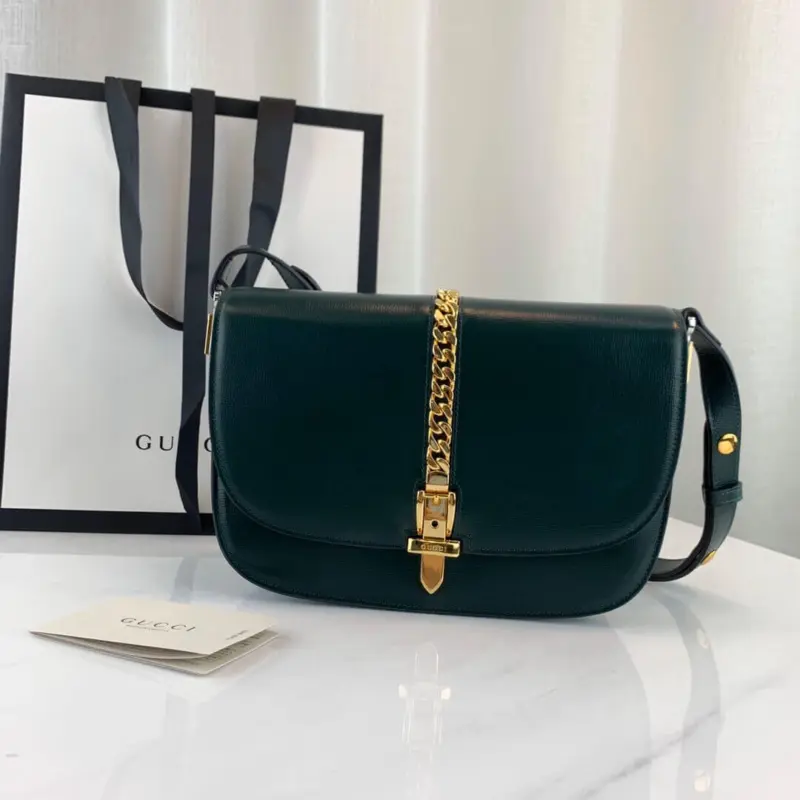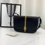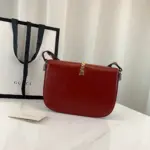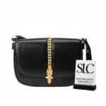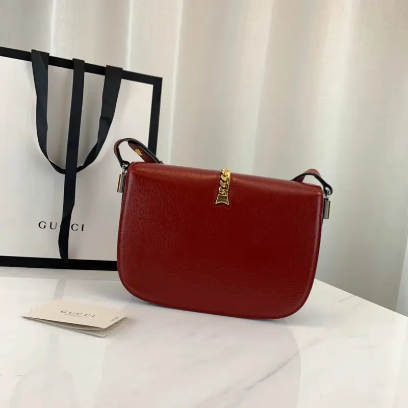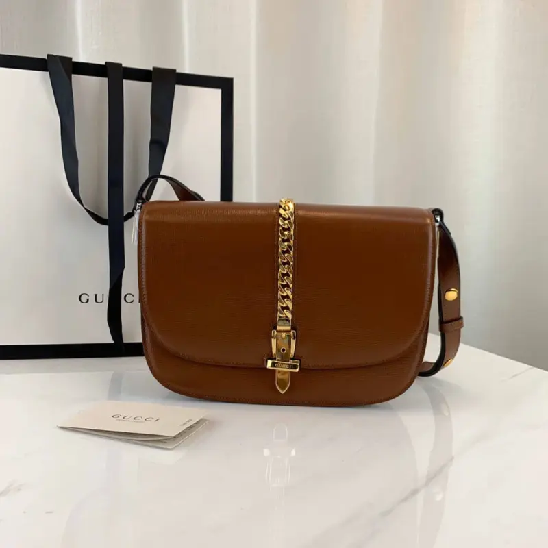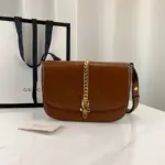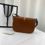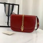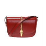 Inspired by archival designs, this shoulder bag blends a timeless silhouette with contemporary flair. Crafted from richly textured leather with a vintage effect, this piece showcases a softly rounded shape for a sophisticated look. The front flap is elegantly defined by a narrow, gold-toned metal chain and buckle, adding a touch of polished distinction.