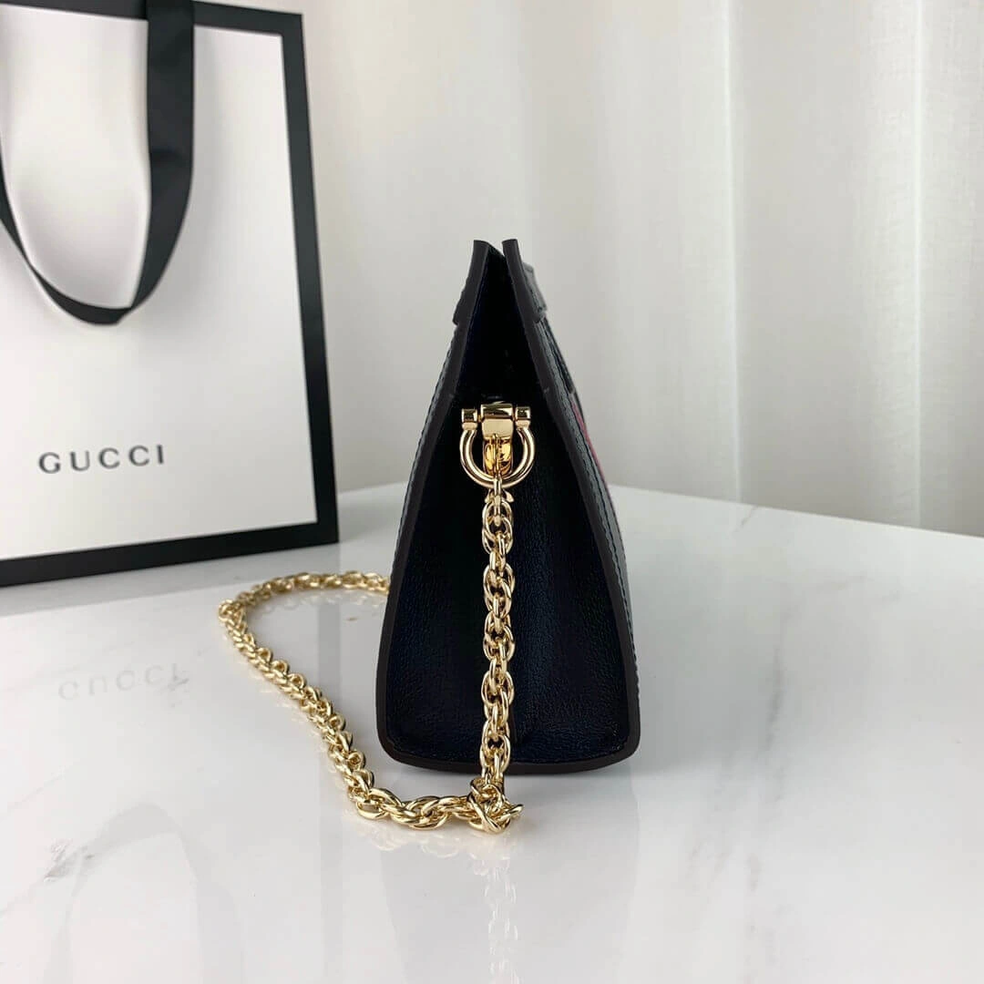 This beautifully structured shoulder bag offers a timeless aesthetic, crafted from smooth, fine leather. Its classic silhouette is enhanced by a striking green and red inlaid stripe, adding a touch of vintage-inspired elegance. The design is completed with gleaming gold-toned hardware, including a petite interlocking G emblem on the front magnetic closure for a refined finish.