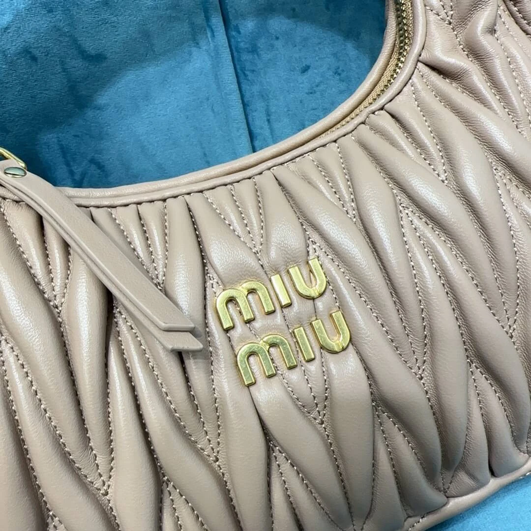 Wander Matelasse Nappa Leather Hobo Shoulder Bag Sand Beige 5BC153