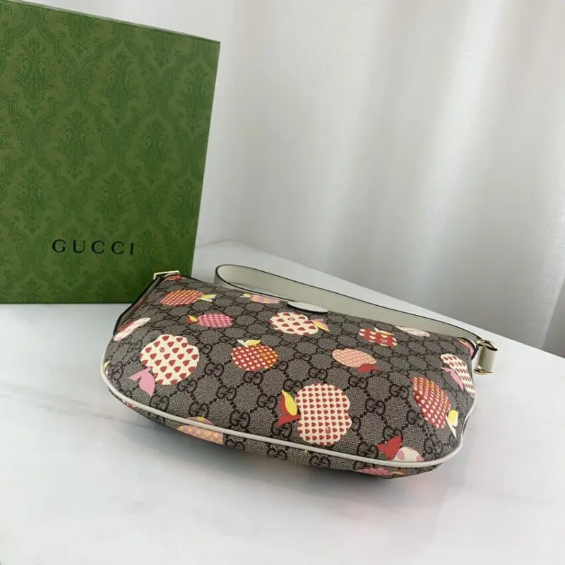 Web Stripe Apple Print Small Monogram Camera Bag 598125