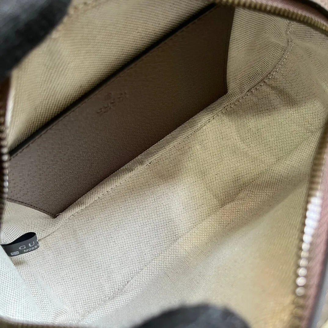 This dome-shaped shoulder bag combines timeless style with everyday functionality. Crafted from a durable coated canvas featuring a sophisticated monogram print, it’s accented with rich brown leather trim for a refined finish. The bag’s classic silhouette is enhanced by a signature green and red striped detail, offering a nod to vintage-inspired design while remaining perfectly modern.