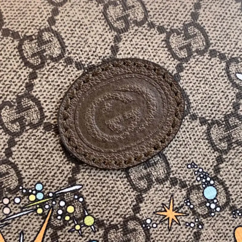 - Beige and ebony coated canvas with a classic geometric pattern and a colorful character print