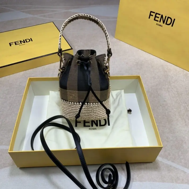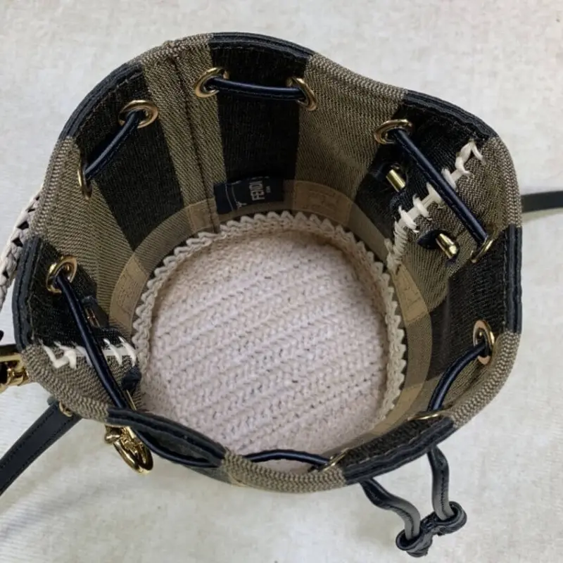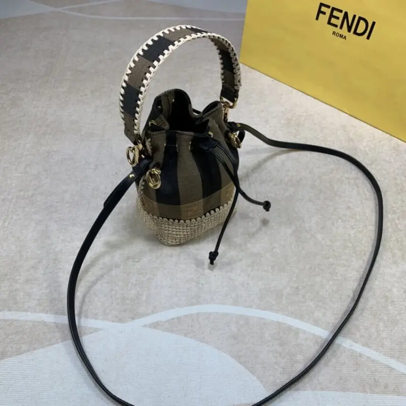 Woven Canvas and Raffia Mon Tresor Mini Bucket Bag 2028