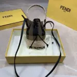This versatile piece offers multiple styling options thanks to its detachable top handle and a separate leather shoulder strap. The interior, lined with soft suede, is secured with a classic drawstring closure, keeping your essentials safe. Decorative pearl and crochet details provide a final, charming flourish to this exquisite accessory.