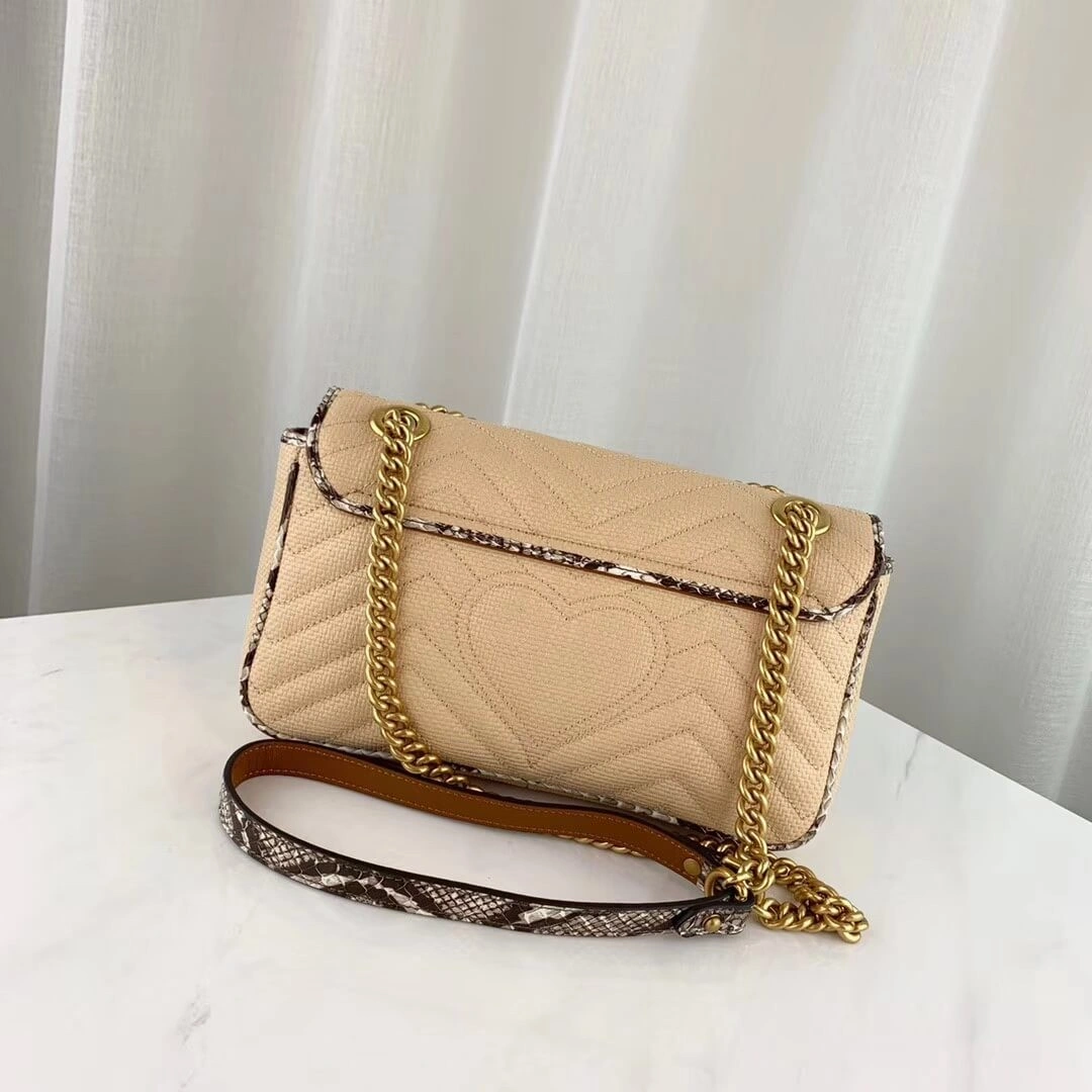 Discover a perfect accessory for any season with this beautifully structured shoulder bag. Featuring a body crafted from natural woven raffia in a sophisticated quilted chevron pattern, this piece offers a unique blend of texture and timeless style. The design is elegantly framed with a contrasting snakeskin trim, creating a look that is both eye-catching and luxurious.