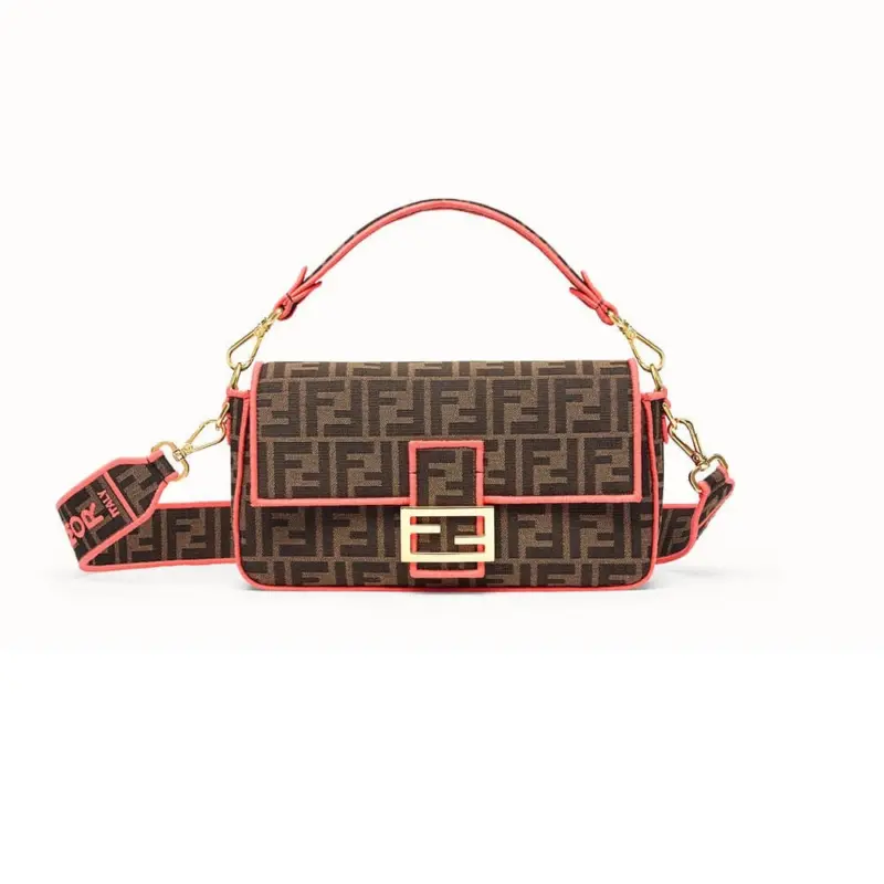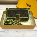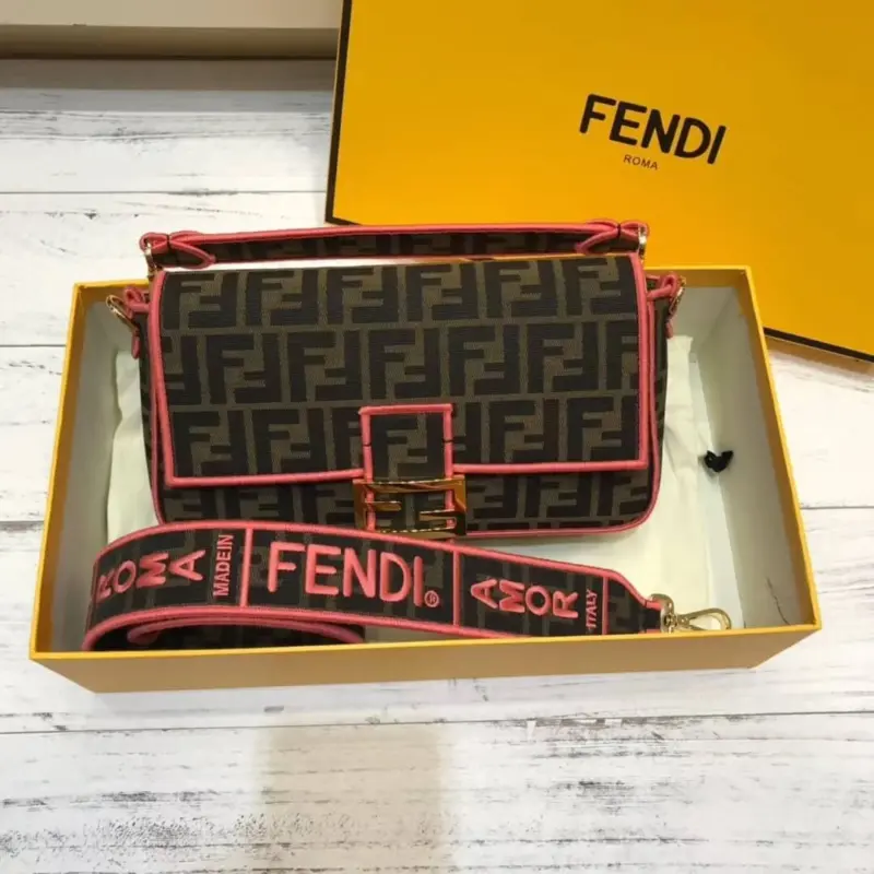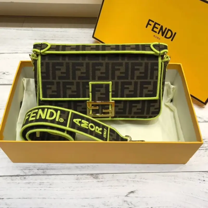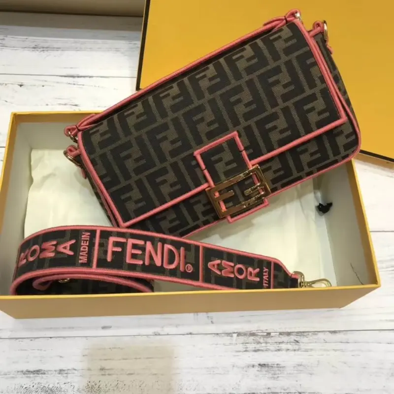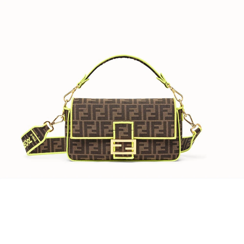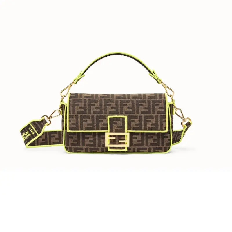 Woven Fabric Shoulder Bag with FF Motif Embroidery 8BR600
