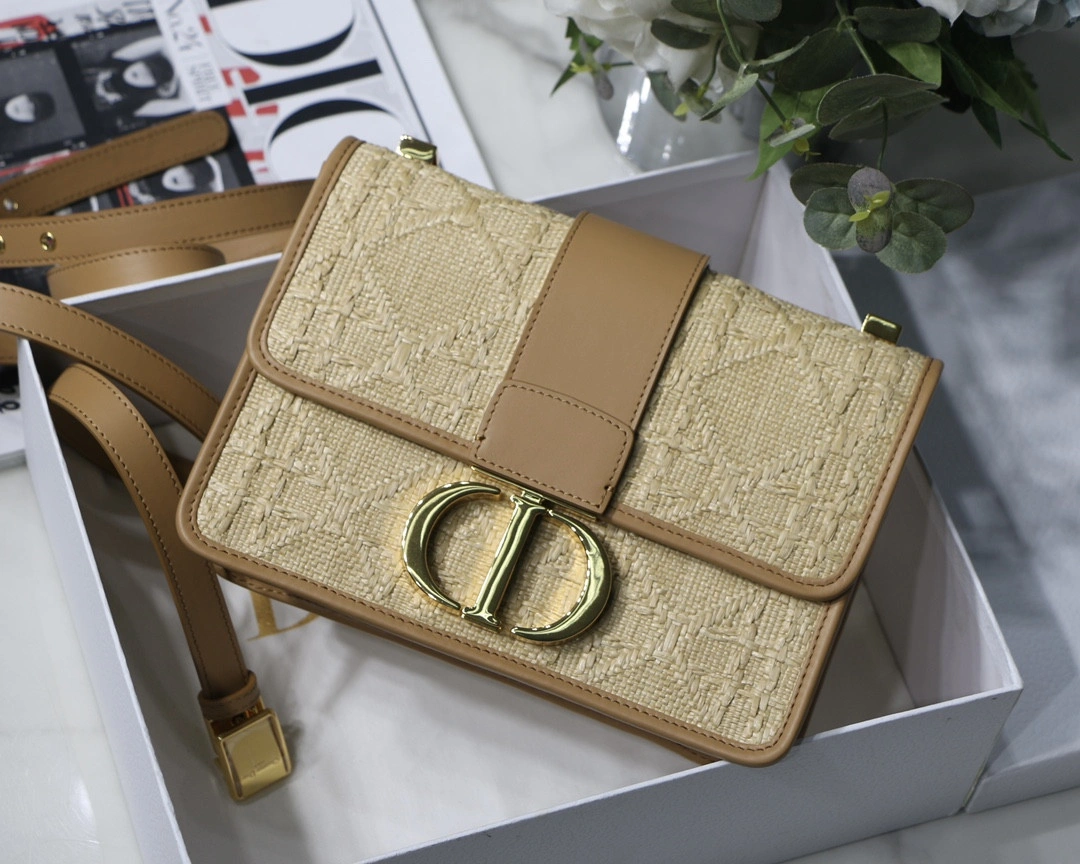 Woven Flap Shoulder Bag in Natural Cannage Raffia M9203