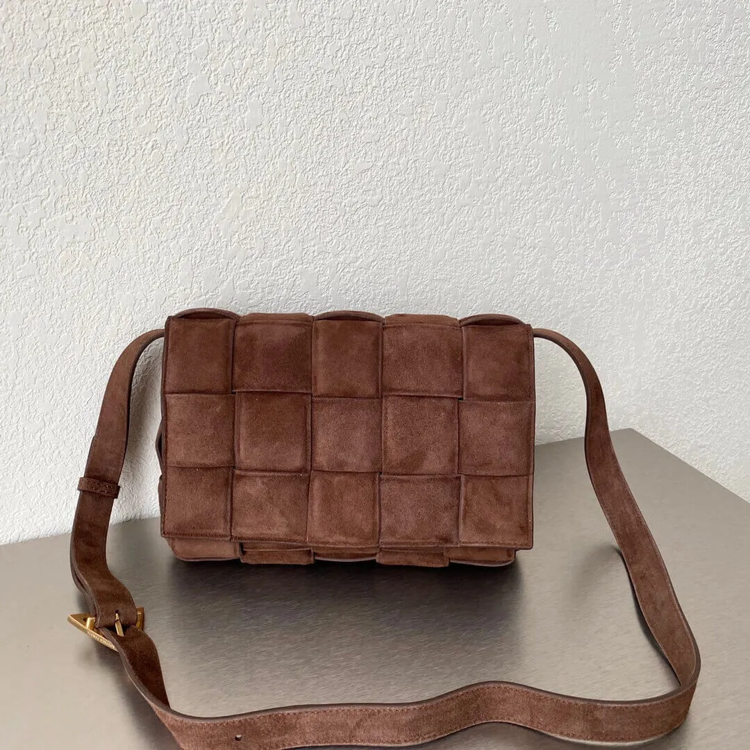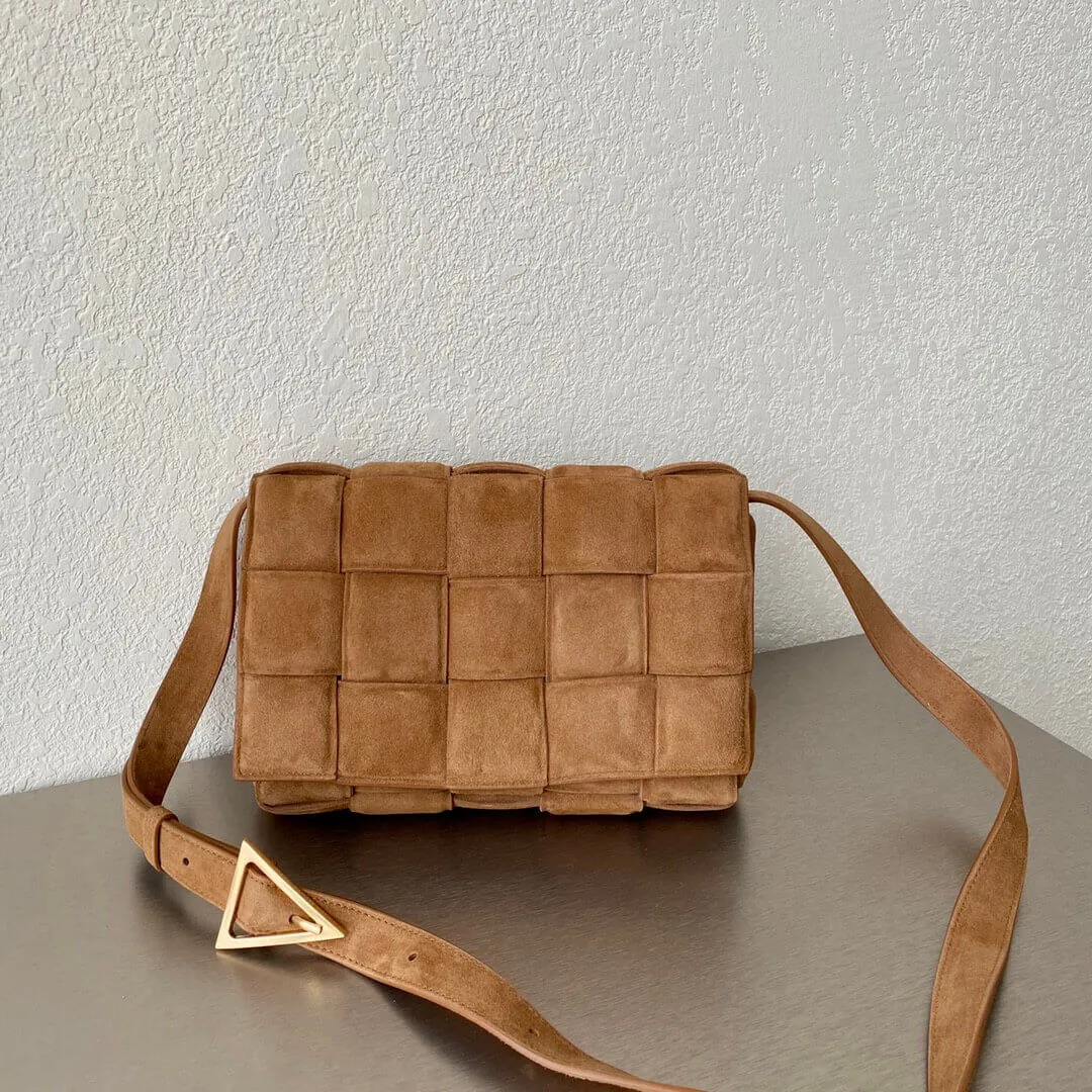 Woven Padded Cassette Crossbody Shoulder Bag in Suede 591970