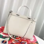 Designed for both style and function, this bag offers multiple carrying options. It features classic double top handles and includes a detachable, adjustable shoulder strap for crossbody or shoulder wear. The thoughtfully organized interior, secured by a distinctive double-lock closure, provides ample space for essentials, making it the perfect blend of luxury and practicality.