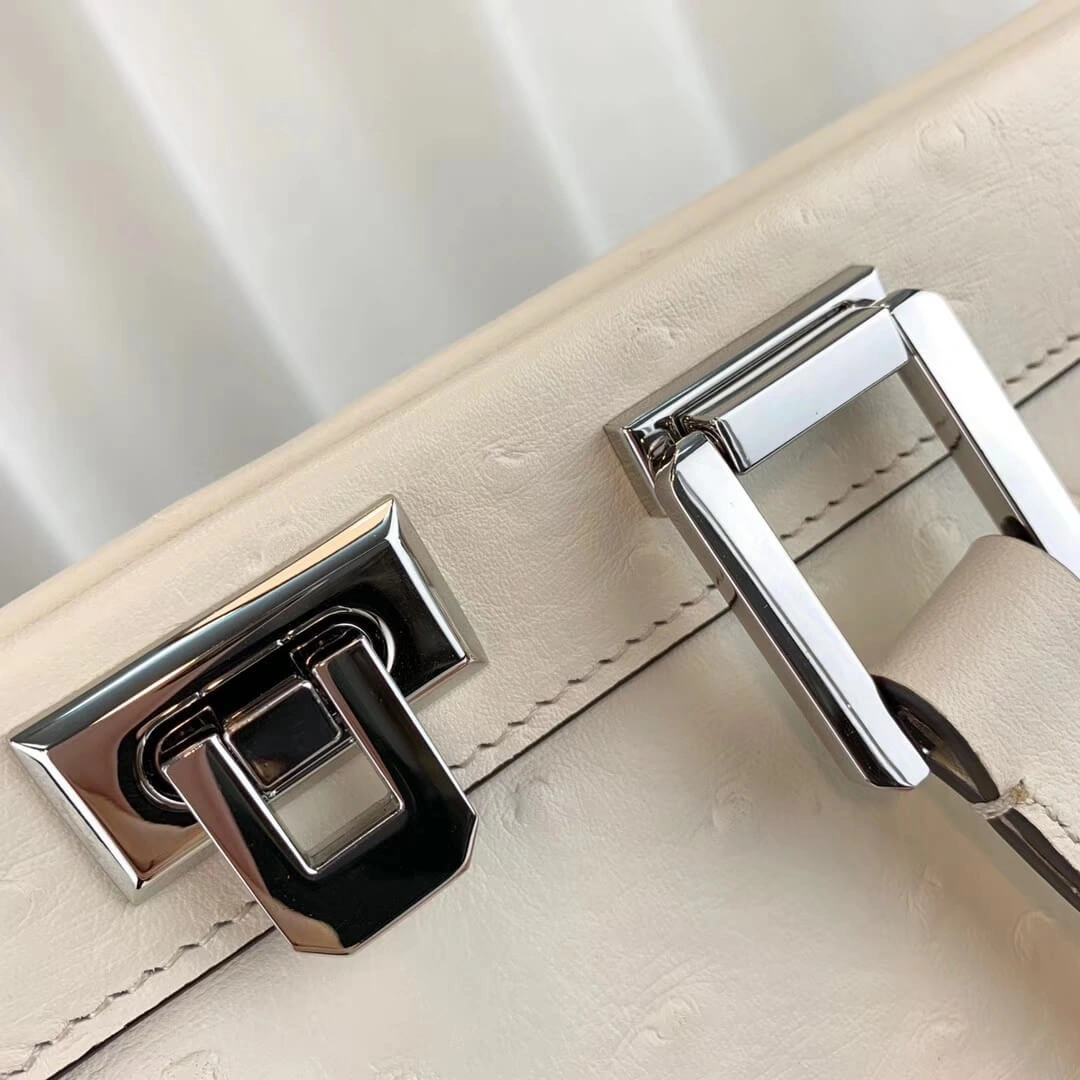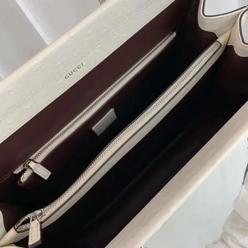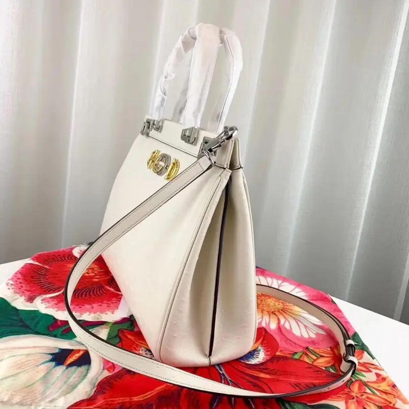 Zumi Medium Top Handle Bag in White Ostrich Leather 564714